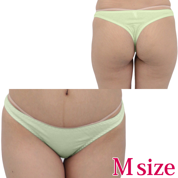 その日の気分によって選べるシンプル無地の女性用Tバック黄緑。全6色展開から選択できる豊富なカラーバリエーション!お気に入りの色を複数持つのも良し、色違いで揃えても良し!素材は通気性&伸縮性に優れたコットン生地仕様で、夏場も汗で湿気ることなく快適な穿き心地。ボトムスに響きにくいため、着る服を悩むこともありません◎Mサイズ