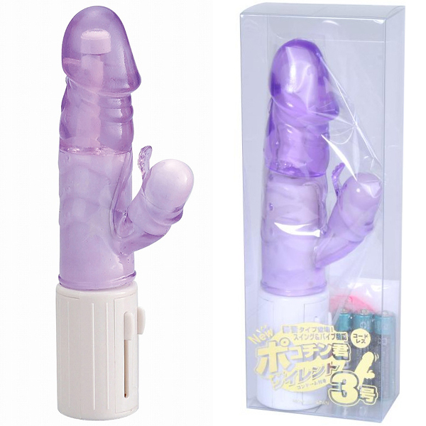 アメジストのように透明感のあるパープルカラーが綺麗なリアル形状の電池式バイブ。ゼリーのようなプルプル柔らかい質感とカリ太ヘッドが特徴的♪スイングと振動やクリバイブなど3つの刺激的機能を搭載した、リモコン一体型のコードレスバイブです。単4電池を3本使用