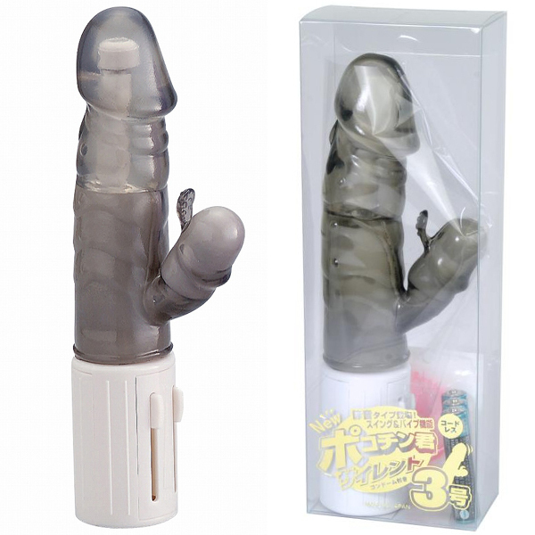 カリ太ヘッドとプルプルとしたゼリーのような質感が特徴のコードレスバイブ。大人気シリーズ「ポコチン君」が、リアル形状はそのままに、全長17cmと実践サイズになって登場!うねるスイング機能や振動、クリバイブなどの3種類の刺激的な機能が付いた電池式バイブです。人気のスモークカラー、単四電池3本使用
