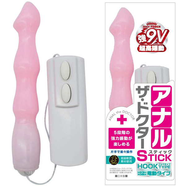 アナル開発用としても最適な人気の「アナル・ザ・ドクター」に9Vの電動ディルド(ピンク)が登場。先端の出っ張りがフック形状になった刺激的ボディ!5段階のハイパワー振動が楽しめる日本製ディルドです。高級軟質素材を採用、9V形電池1本を使用