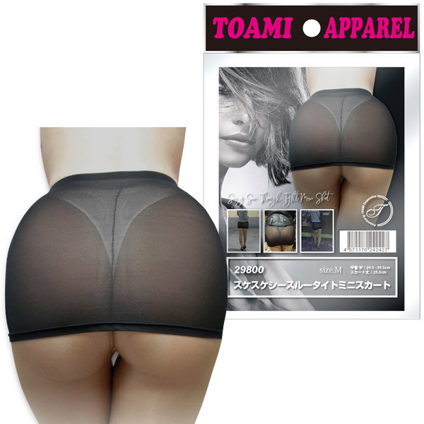 ストレッチ性に優れ、身体にぴったりフィットする!ストッキングのような薄手のシアー素材で仕立てたミニスカート(黒)。