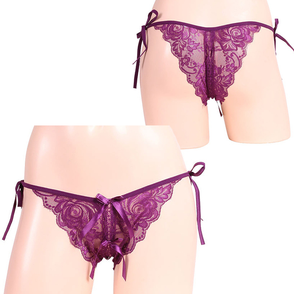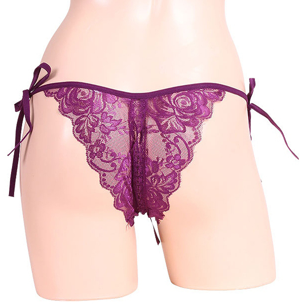 深みのあるパープルカラーが大人っぽいサイドリボンのハーフバック♪エレガントな花模様のスカラップレースと艶やかな光沢リボンで素肌を彩ります。※こちらの商品は受注発注商品の為、ご注文から発送までに3、4営業日掛かる場合が御座います。