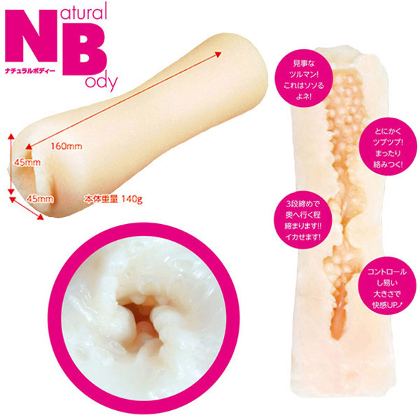 ●全長約16cmのロングボディ●もっちり柔らかな素材を使用●うっすらピンクがかったエロボディ●ちょっぴり開いたヒダ付き挿入口●異なる大きさのツブツブ構造●最後までしっかり締め付ける3段締め形状●日本製。