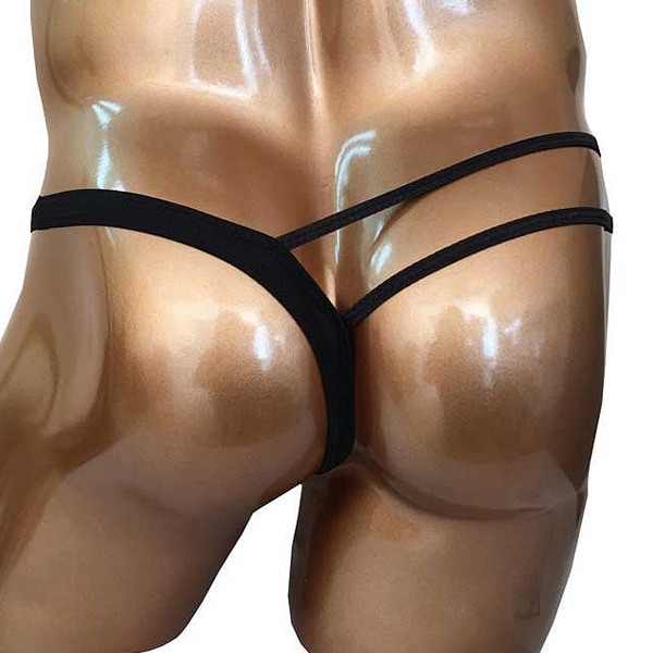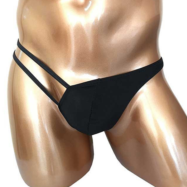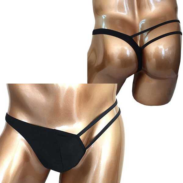 インナーもお洒落に着こなす時代!左右非対称なデザインがスタイリッシュなワンショルダー風の男性用Tバック。立体縫製で包み込みながら、まるでドレスのような美しいデザインで下半身を飾る♪小悪魔的な肌魅せを叶えるダブルストリング仕様、フリーサイズ