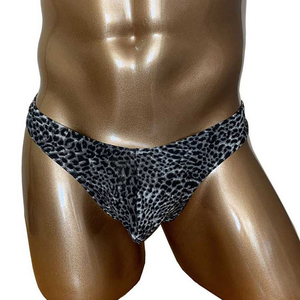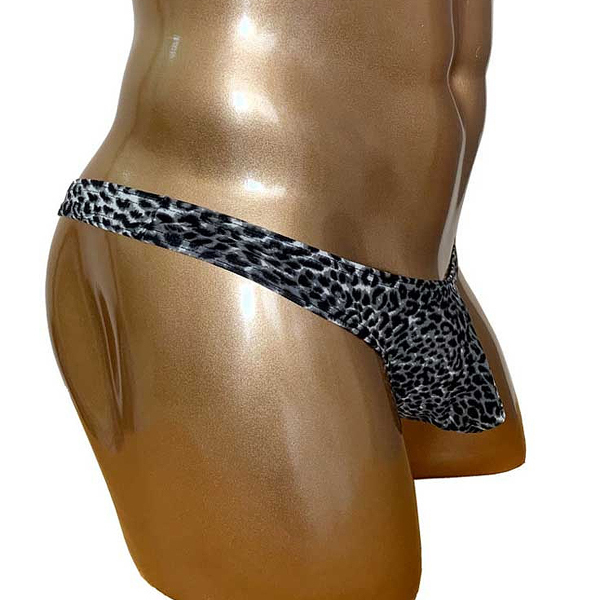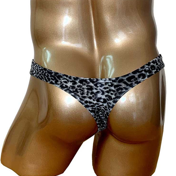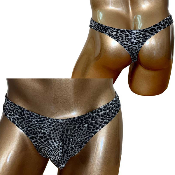 モノトーンでシックにまとめたヒョウ柄模様の男性用Tバック。シンプルで日常的に使いやすく、野性味あふれるワイルドな一枚!立体縫製で貴男のシンボルを優しくホールドします。フリーサイズ
