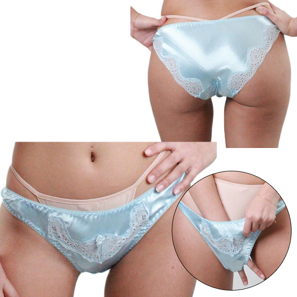 花柄模様のシースルーレースがゴージャスなVフロントのショーツ。バックはサックスカラーのサテン地がヒップを優しく包み込みます。大人の魅力がたっぷり詰まった爽やかカラーのオープンランジェリーです。◎サックス、Mサイズ