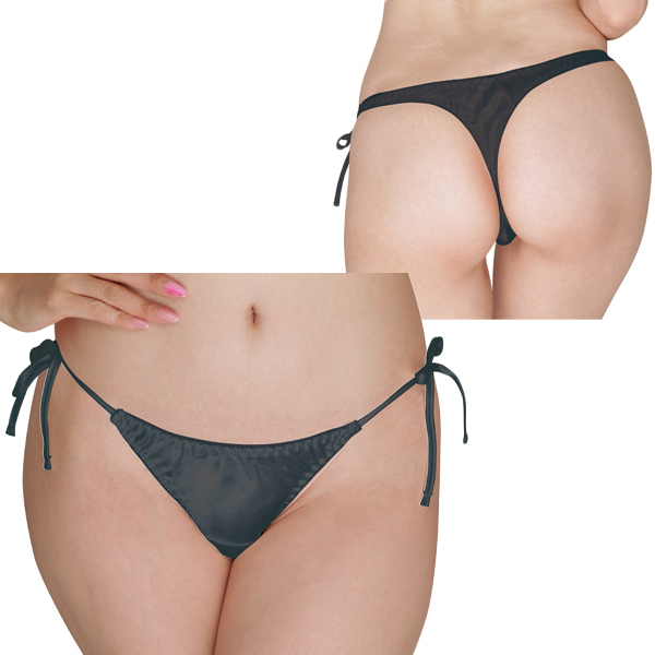 シンプル無地で普段使いにも最適!上品な光沢のあるストレッチ生地を使用した日本製のTバック。カラーは大人の色気漂うブラックカラー。丁寧な縫製で仕上げたシンプルな脇紐Tバック。◎ブラック、Lサイズ