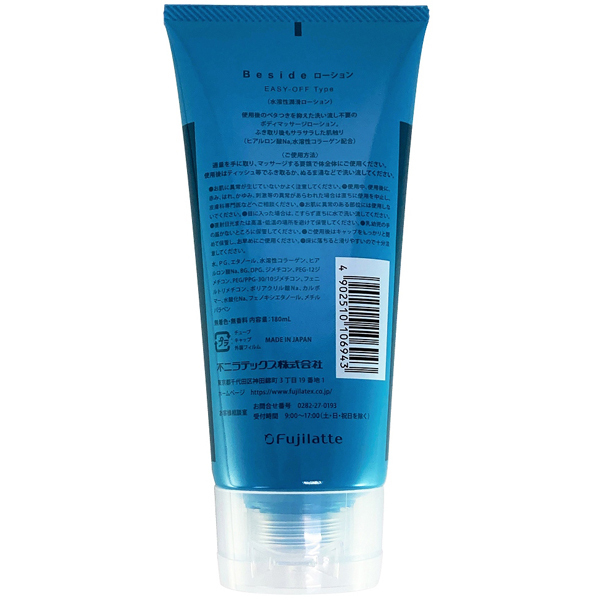 プレイ後はサッと拭き取るだけで綺麗さっぱり!使用後のベタつきを抑えサラサラとした肌触りを実現した洗浄不要ローション180ml。シンプルな青のパッケージデザインと、使い勝手の良いワンタッチキャップ&ソフトチューブ仕様!適量を手に取り身体をマッサージするようにお使いください◎日本製