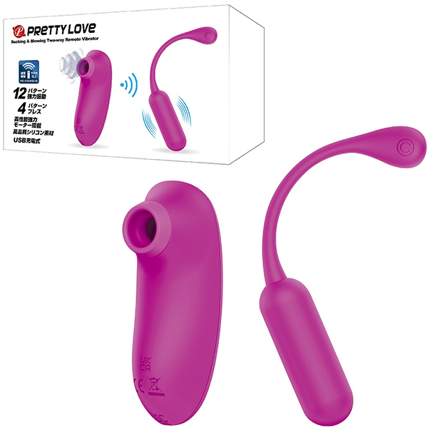 遠隔操作できるリモコンの機能も兼ね備えた「プリティラブ サッキング&ブローイングツーウェイリモートバイブレーター」。