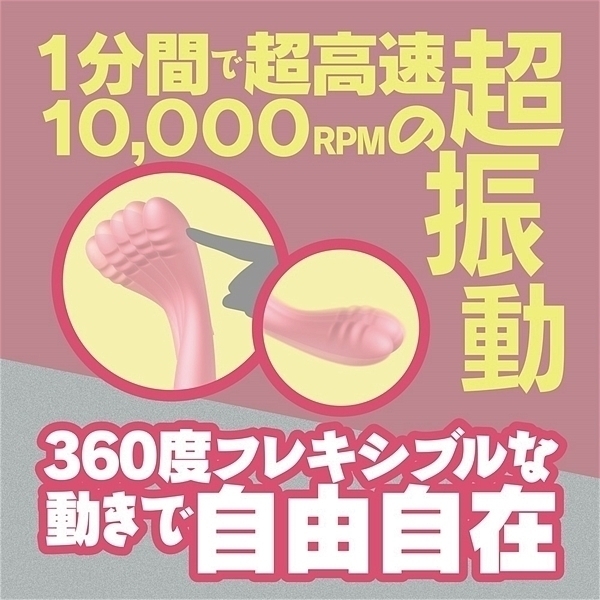360度フレキシブルに動かせる為、好きなところへ直接届くシリコン素材のスティックローター。1分間で超高速10000RPMの超振動でありながら静音性にも優れています。フル充電から約60分の連続使用も可能です。生活防水設計の為、使用後は丸洗いも可能なため清潔にご使用いただけます。●カラー:ピンク