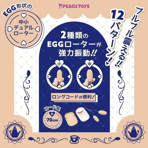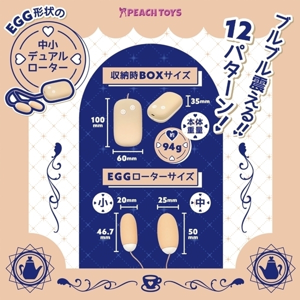 | ■ サイズ・ セット内容 | パッケージ:16.0×7.0×5.0cm 本体:収納時BOX10.0×6.0×3.5cm・EGGローター(小)4.6×2.0cm・EGGローター(中)5.0×2.5cm・コード長約70.0cm USB充電式 | ||