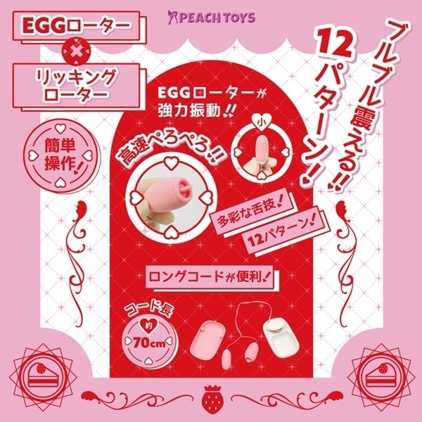 | ■ サイズ・ セット内容 | パッケージ:16.0×7.0×5.0cm 本体:収納時BOX10.0×6.0×3.5cm・EGGローター(小)4.6×2.0cm・リッキングローター5.0×2.5cm・コード長約70.0cm USB充電式 | ||