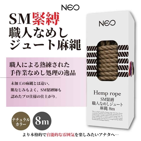 職人による熟練された手作業により処理された高級ジュート麻縄です。SM向けに選ばれた麻縄で雰囲気を盛り上げます。肌なじみもよくSM緊縛師も認めたプロ仕様の商品となっています。●カラー:ナチュラル
