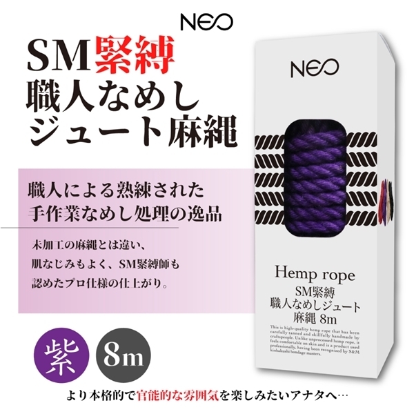 職人による熟練された手作業により処理された高級ジュート麻縄です。SM向けに選ばれた麻縄で雰囲気を盛り上げます。肌なじみもよくSM緊縛師も認めたプロ仕様の商品となっています。●カラー:紫