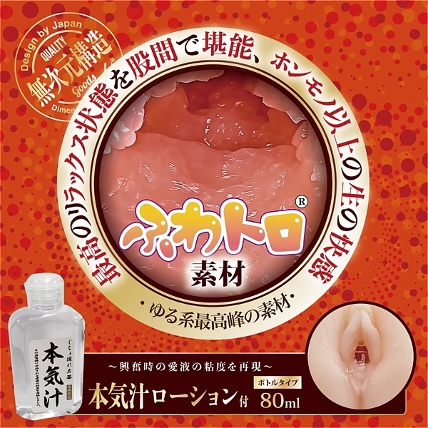 ふわトロとぐちょ濡れ名器のコラボレーション。ゆるふわな感触により長時間ストロークを楽しむ「ふわトロ」と有機的な内部構造で搾り取る「ぐちょ濡れ名器」のリアル感。深激は波打つ肉壁と柔らかなイボが奥へ進むと包み込み搾り取ります。80ml本気汁ローション付属