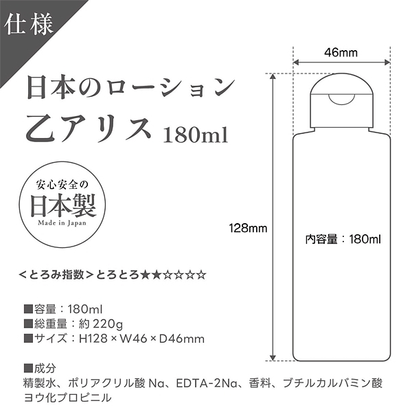 金髪ギャル系AV女優<乙アリス>のエロス液を、質感から糸引きまでリアルに再現!「日本の名器」をはじめ各種グッズとのシンクロ性が抜群!<乙アリス>のとめどなくあふれる愛液を収録現場でリサーチし、色や質感、匂いまでもローションに反映。長く潤いが続くので、まったりプレイにもぴったり。いやらしい糸引きにもかかわらず、べたつかない絶妙なテクスチャ。