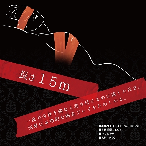 SMプレイの必須アイテム<ボンデージテープ>!気分で色を変えたいお客様の声にお応えし、女体を彩る業界最多の7色をラインナップ!ノリを使わない万能テープで服や髪・肌を傷めず、お手軽カンタン拘束プレイ!誰でもSMプレイを楽しめる今、とりわけ注目を浴びているのが、この幅広な拘束テープ。使用感はまるで「厚手の食品用ラップフィルム」。