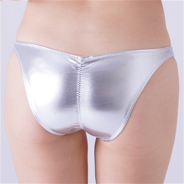 エナメル生地の光沢感がセクシーさを際立たせる、食い込みフルバックショーツ。●カラー:シルバー