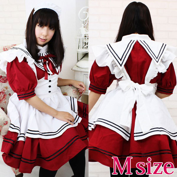 | ■ サイズ・ セット内容 | Mサイズ:B78〜86cm・W62〜94cm 丈:ワンピース78cm(肩幅35cm、袖丈26cm、袖口29cm)・エプロン68cm セット内容:ワンピース(ウエストゴム入り、後ろファスナー、前飾りボタン付き・襟付き)・エプロン(前飾りボタン付き)・カチューシャ | ||