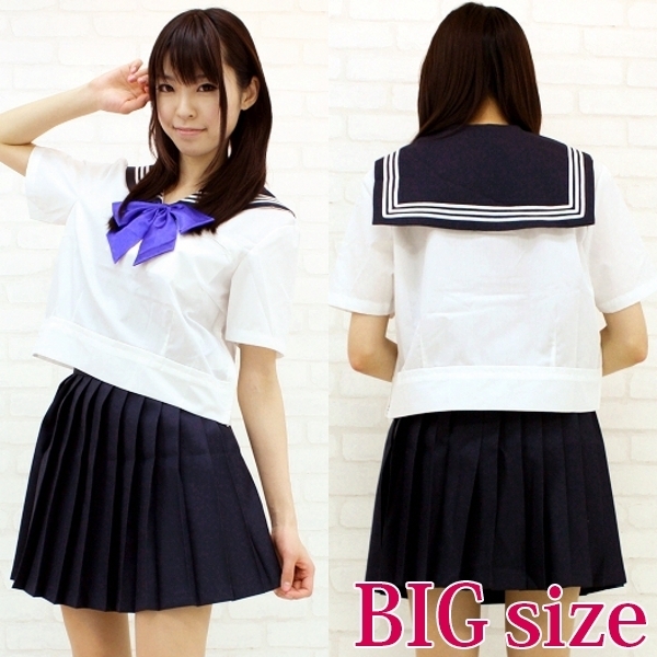 青いリボンが爽やか!キュートな半袖セーラー服コスプレ。