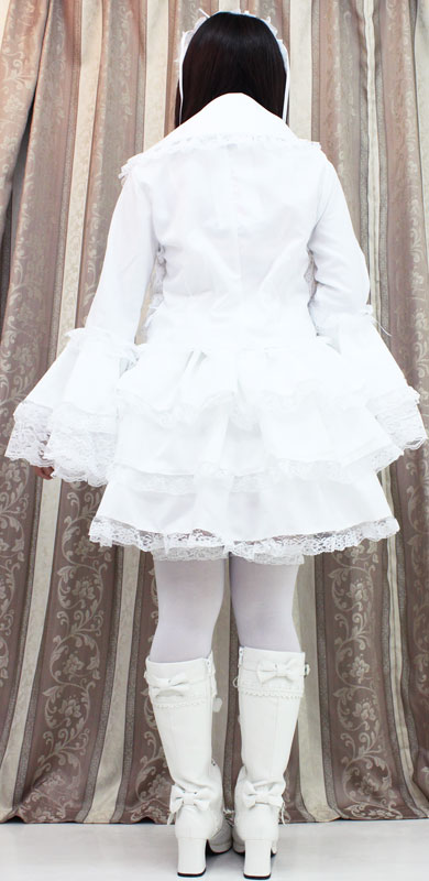 たっぷりのフリフリレースでボリューム感を持たせた、真っ白なチュールメイド服(BIG)。