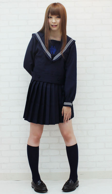 清潔感ある白い3本ラインが入った濃紺の長袖セーラー服は、サイドファスナー仕様。