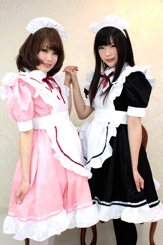 ピンクに馴染む白が乙女チックなワンピースのメイドさん衣装(BIG)。