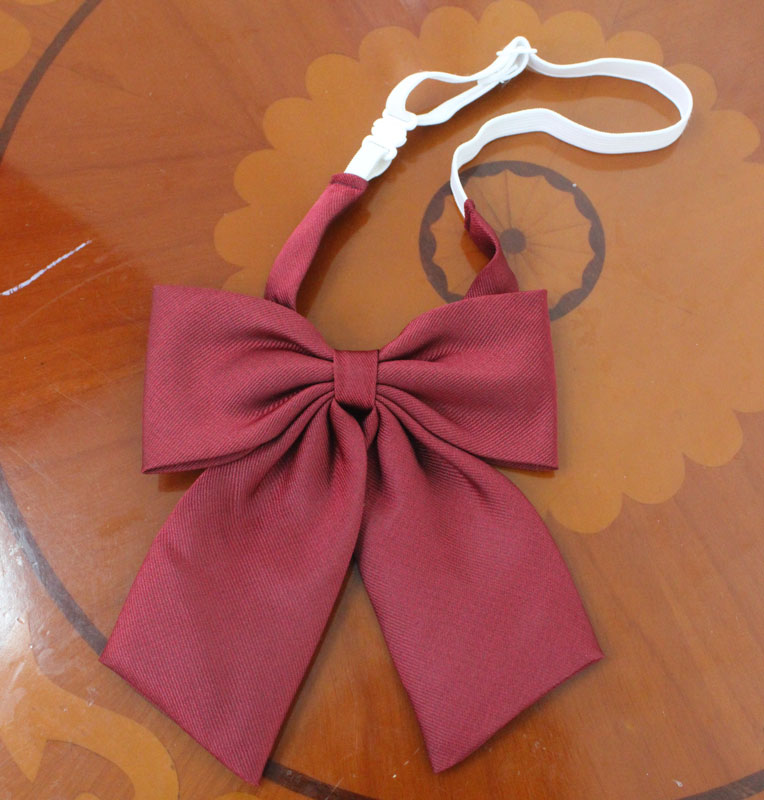 | ■ サイズ・ セット内容 | フリーサイズ 本体:首周り長さ38〜50cm(ゴム最大86cm) セット内容:スクールリボン単品(白い留め具、ゴム紐で長さ調整可) | ||
