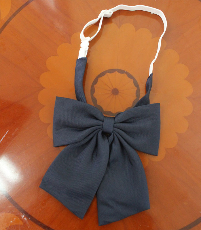 | ■ サイズ・ セット内容 | フリーサイズ 本体:首周り長さ38〜50cm(ゴム最大86cm) セット内容:スクールリボン単品(白い留め具、ゴム紐で長さ調整可) | ||