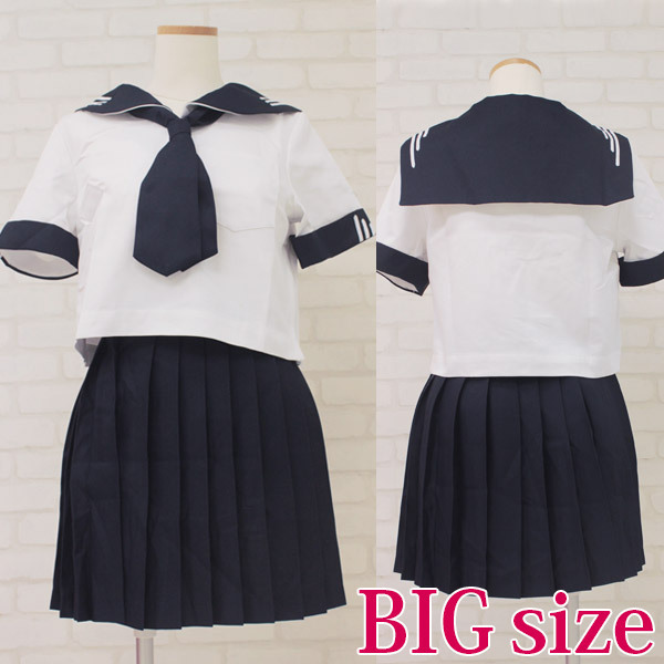 個性的な3本ラインがポイントになった、私立女子学園の半袖セーラー服(BIG)。