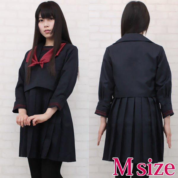 赤のラインがキュート!珍しいジャンパースカートタイプのセーラー服(M)。