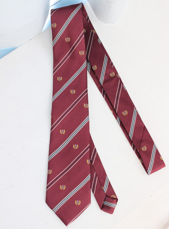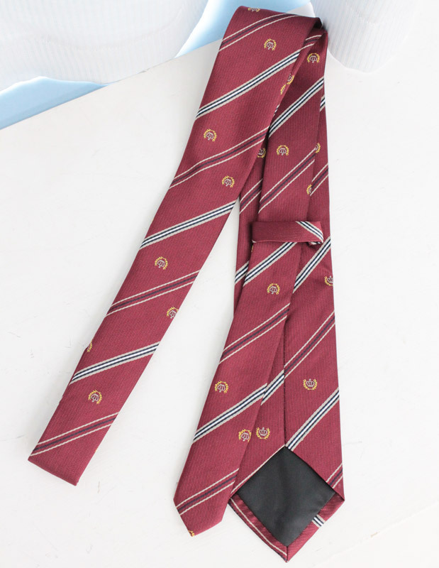 月桂樹に王冠の紋章が刺繍された、お嬢様風のスクールネクタイ(エンジ)。斜めに走るストライプ柄と紋章が、知的な魅力を感じさせます。リボンをネクタイに替えるだけで印象がガラッと替わる!定番スタイルに新しい風を吹き込むコスプレ小物です。※こちらの商品は在庫の状況によりお届けまでに4日〜7日程度かかる場合がございます。