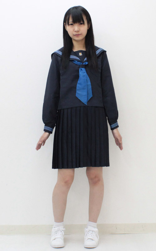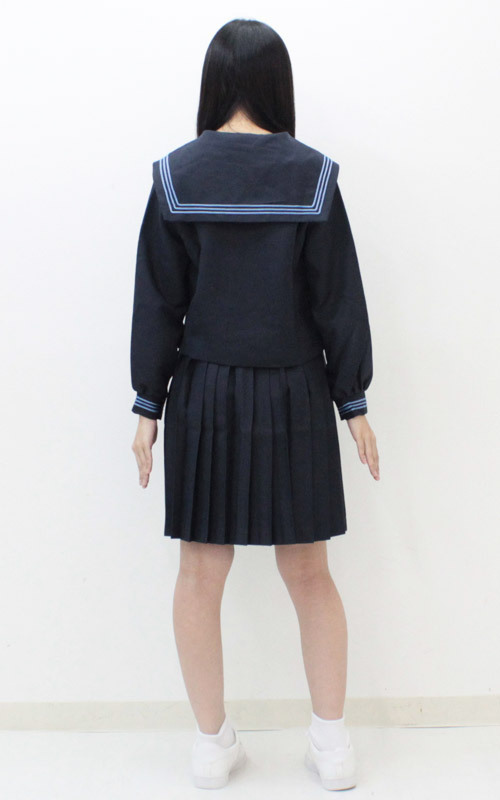 ブルーの3本ライン&スカーフが珍しい!濃紺に指し色が映える、長袖制服コスチューム(M)。