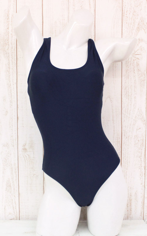 「スク水」と言えば、やっぱり紺色!背中は少し現代寄りのタンクトップデザインになっています。