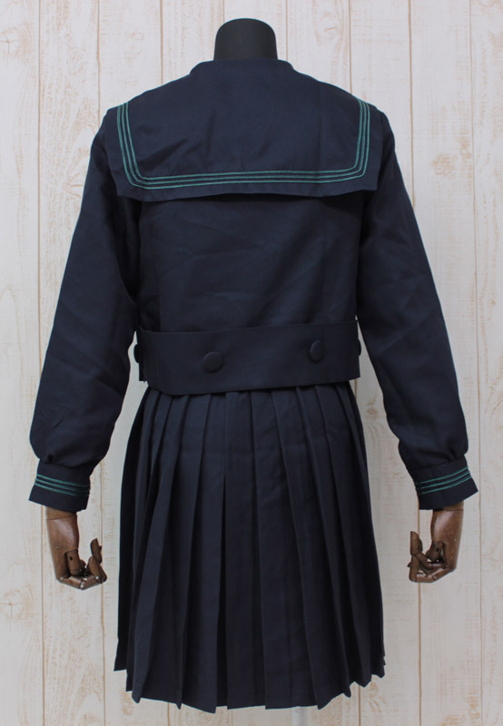 ●ネイビー×グリーンカラー●スカーフ付きトップス(取り外し不可)●プリーツスカート(横ファスナー&ボタン型の留め具)。