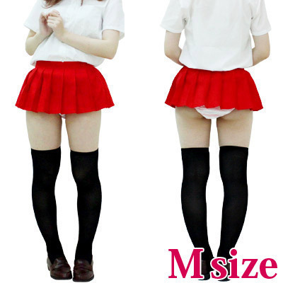 ビビッドな赤スカートで目立ち度バツグン!超マイクロミニ丈の無地プリーツスカート(Mサイズ)。