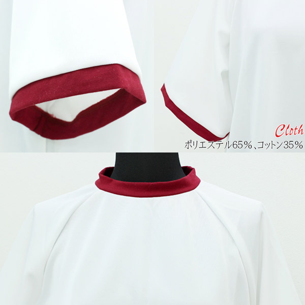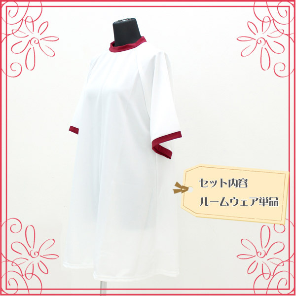 | ■ サイズ・ セット内容 | Mサイズ:B〜110cm 着丈86cm 袖丈40cm 素材:ポリエステル65%、コットン35% 体操着ルームウェア 色:エンジ | ||