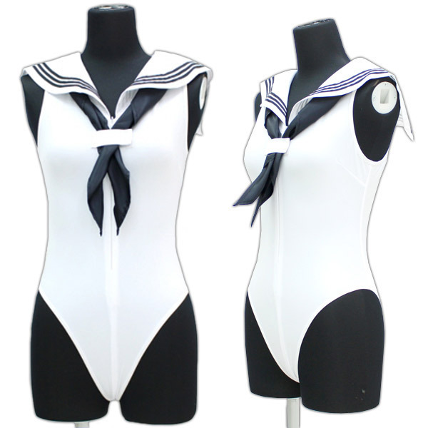 大人気のセーラー服とレオタードが合体!セーラー襟+スカーフ付きセーラーレオタード「セーラーノースリーブレオタード 白 M」。