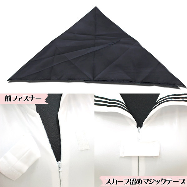 | ■ サイズ・ セット内容 | Mサイズ:B72〜94cm・W62〜86cm・H66〜90cm 着丈57cm セット内容:レオタード(前ファスナー)、スカーフ(マジックテープ) 素材:ポリエステル95%、ポリウレタン5% セーラーノースリーブレオタード 色:白 | ||