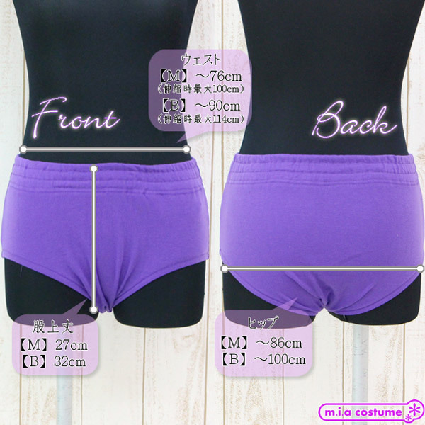 | ■ サイズ・ セット内容 | Mサイズ W〜76cm(伸縮時最大100cm)・H〜86cm ブルマ:股上丈27cm セット内容:ブルマ単品 素材:ポリエステル65%、コットン35% | ||