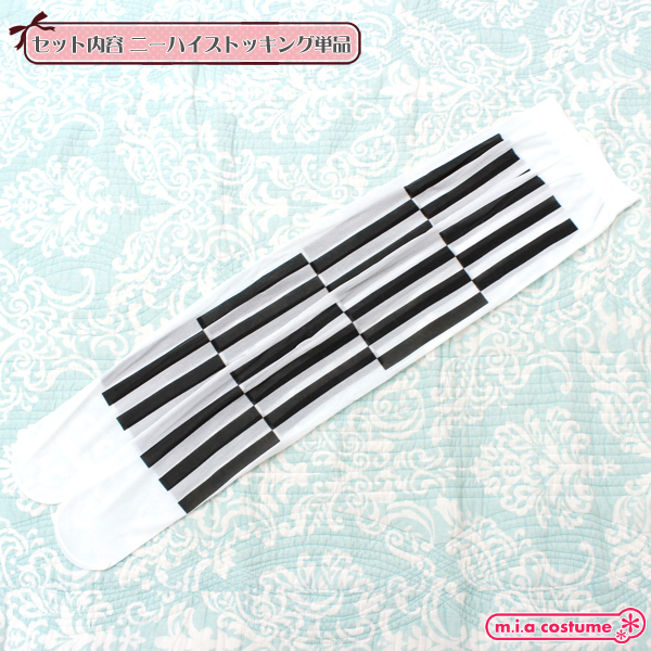 ゴシック&ロリータファッションと相性抜群!ブロック模様の白黒ストライプ柄ニーハイストッキング70cm。