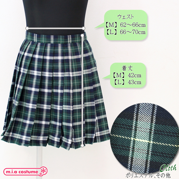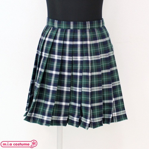 横ファスナーを上げて、ウエスト部分のアジャスター付き留め具を引っ掛けるだけで簡単装着!自分好みの制服アレンジで気分を上げよう♪ポケット付き、落ち着きのある緑×白カラー。