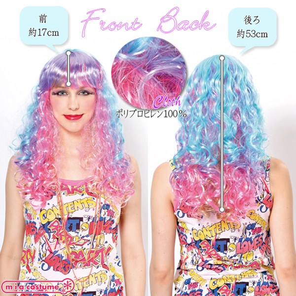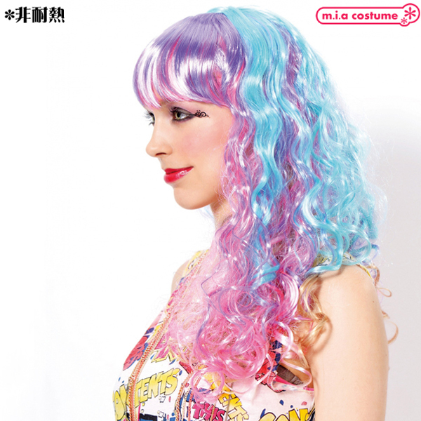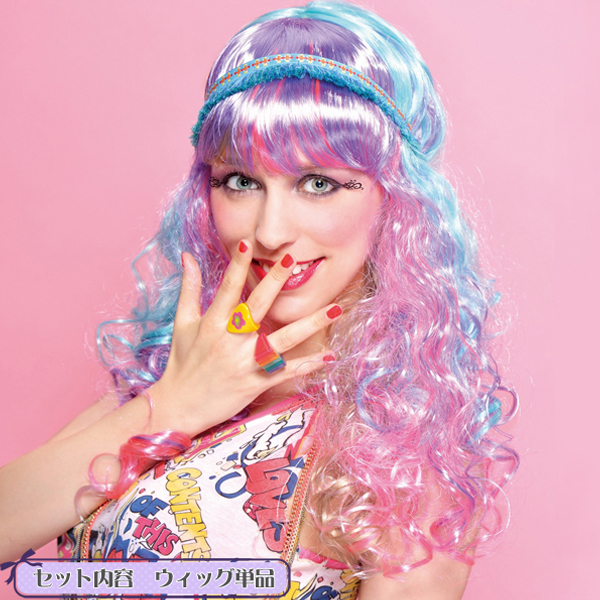 コスプレイベントやハロウィン、誕生日パーティなどで着ければ目立つこと間違いなし!人気シリーズ「セレブパーティーウィッグ」の新作、ポップなカラーが可愛いロングウェーブのウィッグ(レインボー)が登場♪ピンクや水色、パープルなど、複数色を混ぜ合わせた夢かわカラーウィッグ♪原宿系ファッションとも相性抜群◎※非耐熱※非耐熱