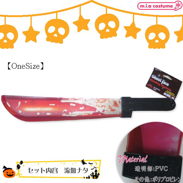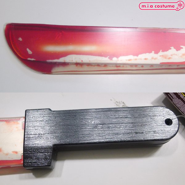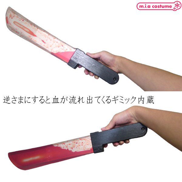 逆さまにすると血が流れ出てくるというギミックを内蔵した流血ナイフです♪ハロウィン関連のステージや舞台小物としても最適!お化け屋敷、文化祭などで、これを使ってみんなを驚かせよう♪流血ナタとして、ハロウィン以外にもコスプレ小物としてもアレンジが光ります!怖さがパワーアップしてオリジナリティもアップすること間違いなし♪