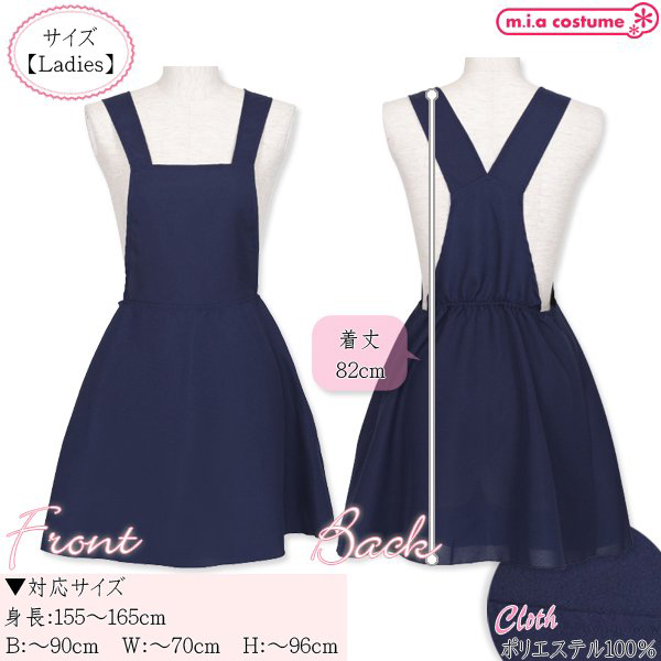 | ■ サイズ・ セット内容 | 対応サイズ:身長155〜165cm・B〜90cm・W〜70cm・H〜96cm 実寸:着丈82cm セット内容:サロペット単品(左脇ファスナー) 素材:ポリエステル100% モデル身長155cm | ||