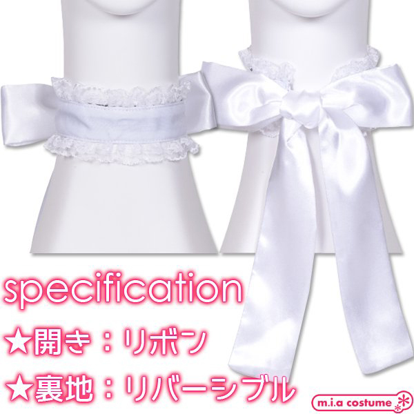 あなただけのこだわりが光る!セレクトしてオリジナルのコーディネートが楽しめちゃうコスプレシリーズから、大きめのリボンが可愛いリバーシブルのフリルチョーカーが登場です♪白と黒を使い分けるのはもちろん、結び目を前にしても後ろにしても可愛いです。リボンを結ぶ位置で首周りの長さ調節も可能!セレクトシリーズのワンピースや小物を合わせて色々なコーディネートを楽しんでね♪