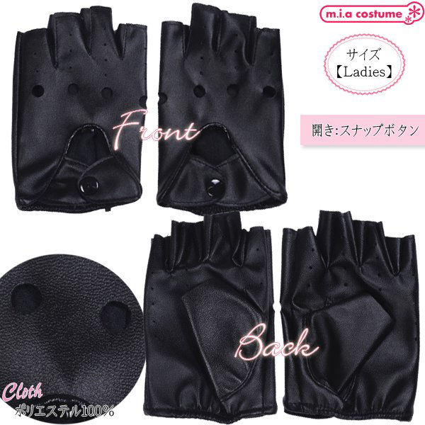 黒無地で指切りのグローブをお探しならこちら!セレクトしてオリジナルのコーディネートが楽しめちゃうコスプレシリーズから指切りグローブの登場です。フェイクレザー素材がカッコイイ指切りグローブ♪クールなコーデにぴったり!セレクトシリーズのワンピースや小物を合わせてね。