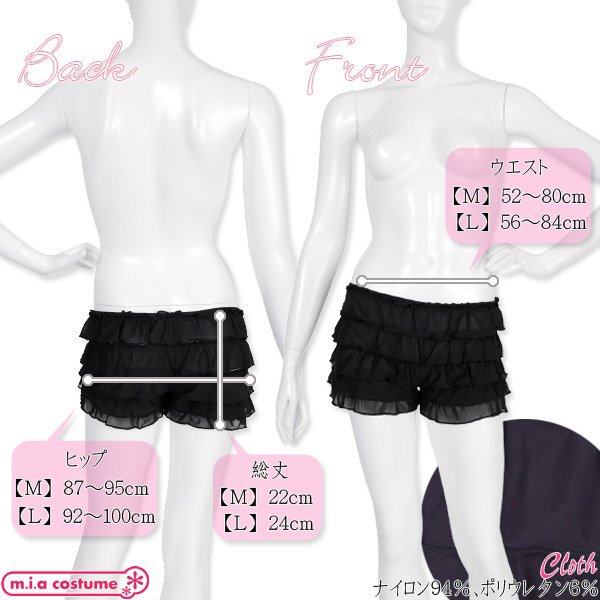 コスチュームの下や制服の下等、ミニスカートの内側に見えても安心♪オールシーズンに使えて便利!低価格なのに高品質で柔らかい素材だからはき心地も抜群♪フリルのデザインも可愛いから何枚も欲しくなりますね。
