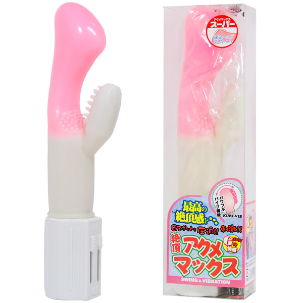 女性に人気のピンクカラーでヘッドと子機による二箇所攻めがたまらない!イボ付き子機がクリトリスをほどよく刺激しGスポットに直接響く振動が絶頂快感を誘発します♪普通の刺激に物足りない方は絶頂アクメマックススーパーをお使い下さい。