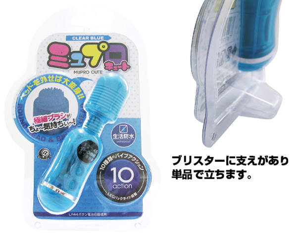 ノーマル&ブラシの2WAY仕様!キュートな多機能ミニ電マ(クリアブルー)。
